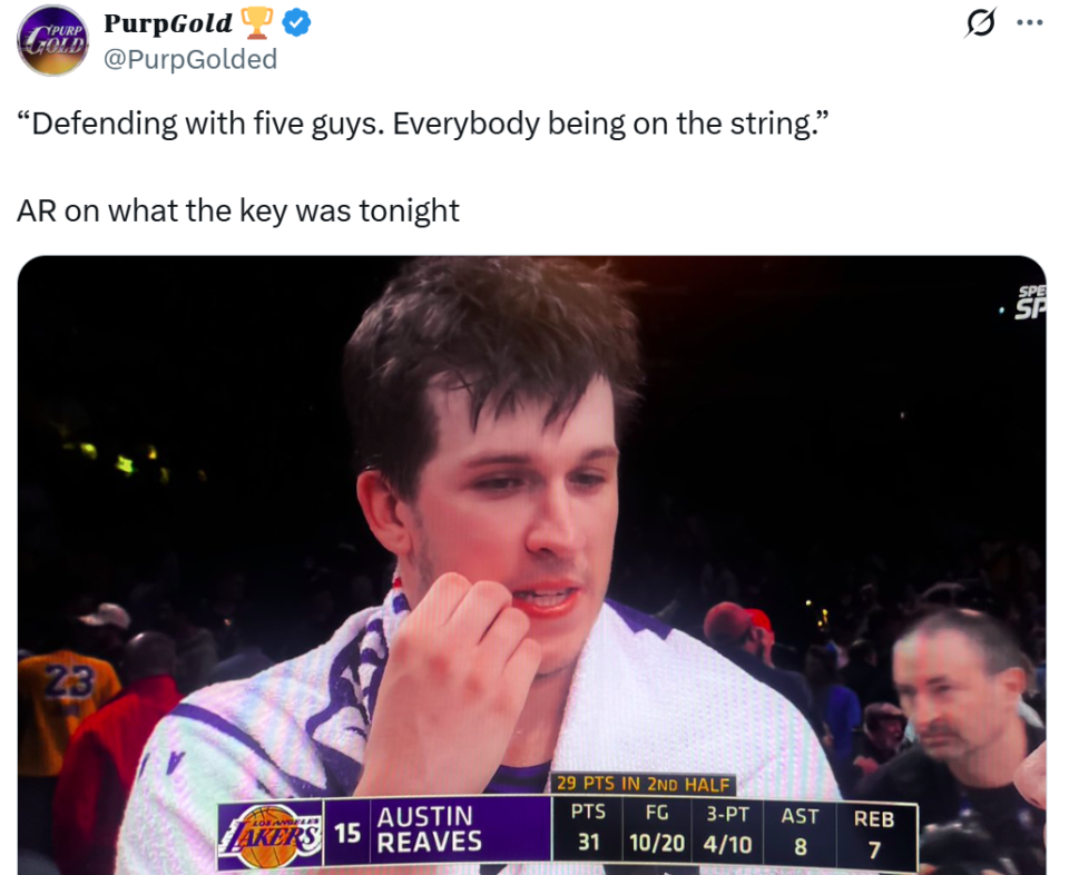 湖人队之所以能够逆势反弹,东契奇与里夫斯两大核心的持续暴走是关键,本场两人又交出无解表现合砍62+18+1华丽数据。